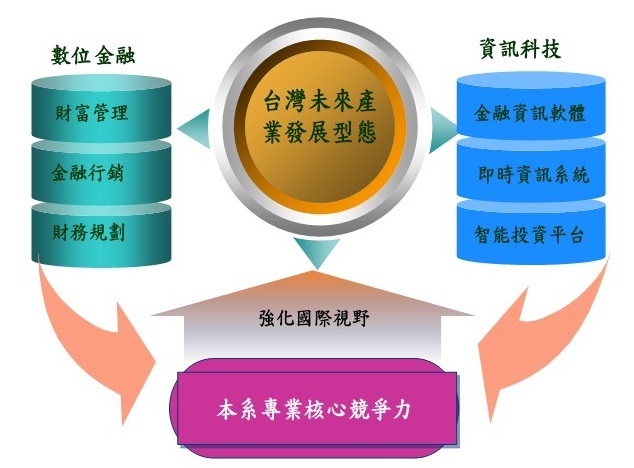 本系建構「財富管理」、「金融行銷」與「財務規劃」三大課程模組並結合「資訊科技」,以數位金融為本系之專業發展方向。